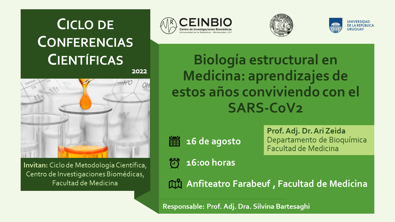 "Biología estructural en Medicina: aprendizajes de estos años conviviendo con el SARS-CoV2", Prof. Adj. Dr. Ari Zeida, Departamento de Bioquímica, Facultad de Medicina.