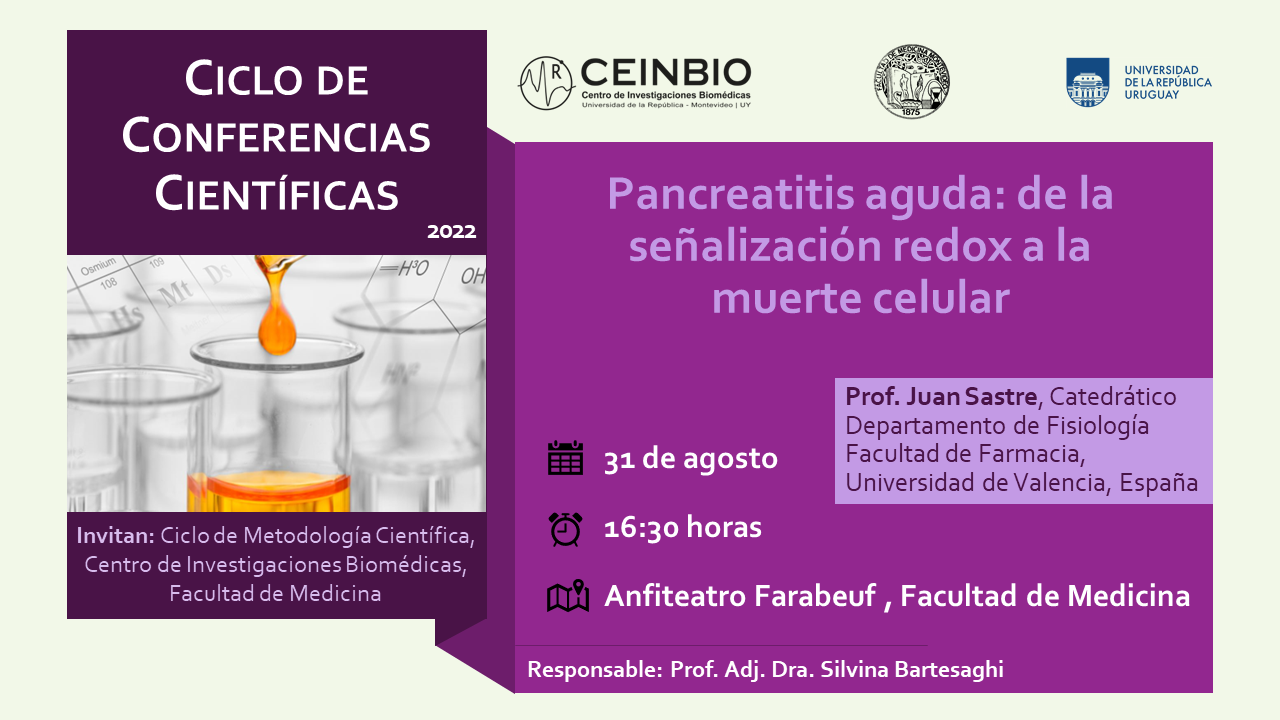 "Pancreatitis aguda: de la señalización redox a la muerte celular", Prof. Dr. Juan Sastre, Catedrático, Departamento de Fisiología, Facultad de Farmacia, Universidad de Valencia, España